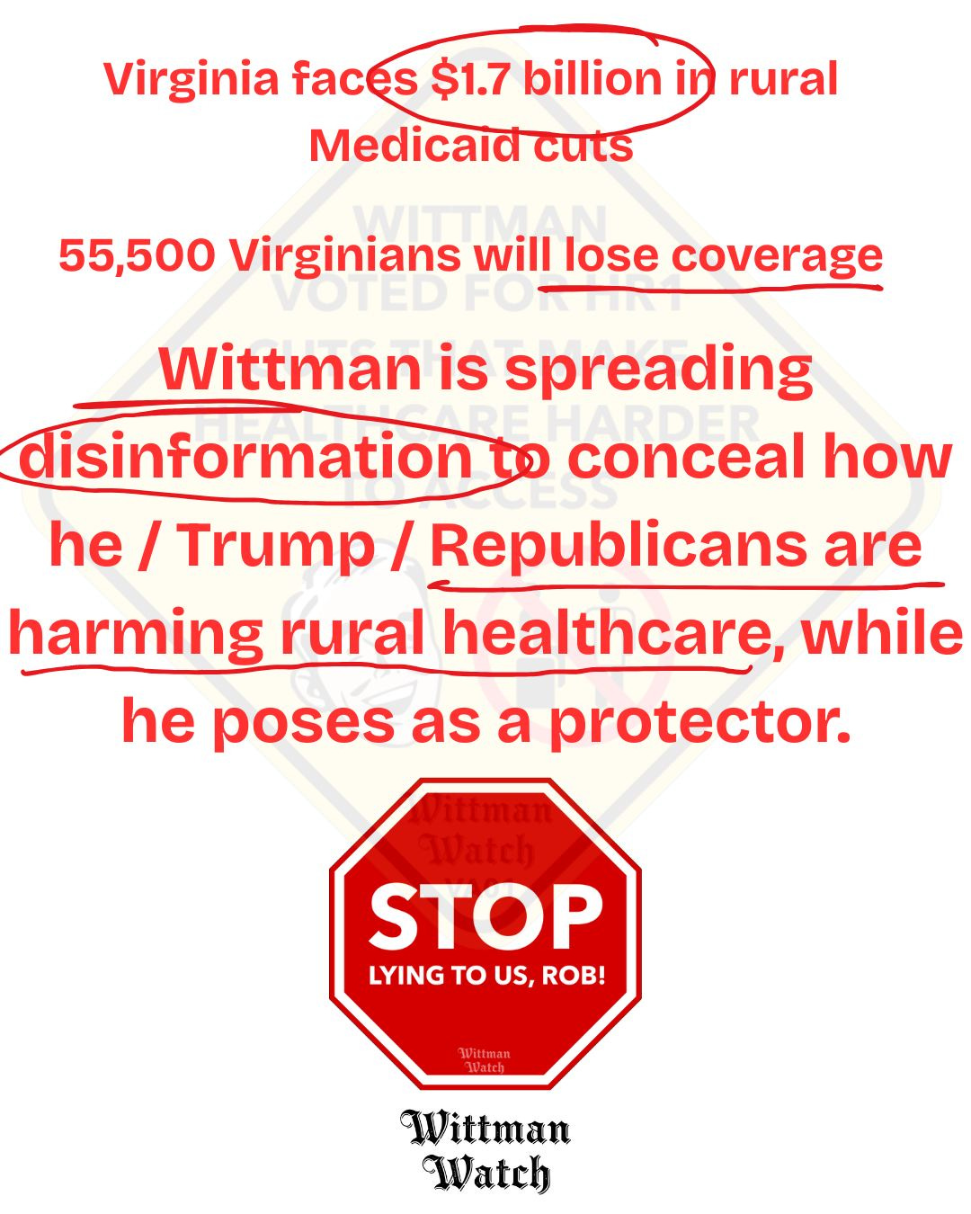 The fact is, because of HR1 VA faces $1.7 billion in rural Medicaid cuts, Virginia hospitals will lose up to $26bn, and 55,500 people will lose coverage.