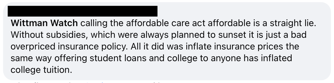 What do you think about the ACA, the current fight over healthcare, and Wittman’s actions around it? Comment here or on Facebook, Instagram, BlueSky, or Reddit. (We post but don’t engage on X.)