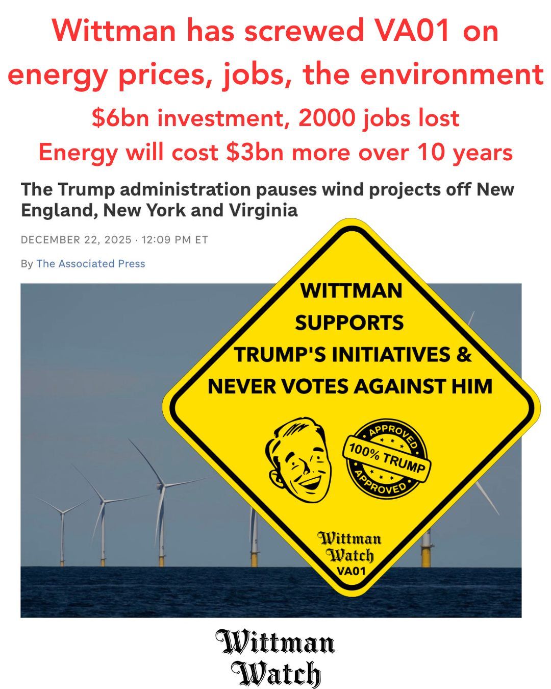 Wittman has screwed VA01 on energy, jobs, and the environment